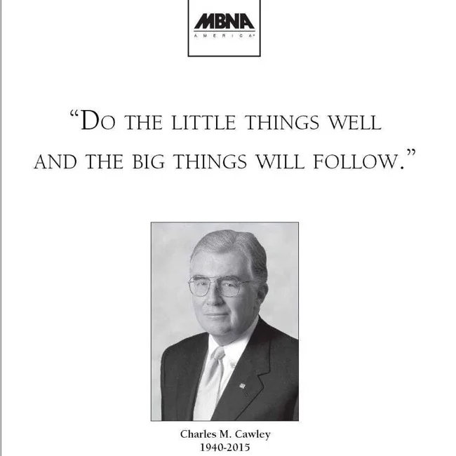 Charlie was very proud of his company and proud of the people working for him. He loved art and was a major collector. He thought, what better way to immortalize the company than to have paintings of each of the MBNA office buildings painted and reproduced for the quarterly report covers.