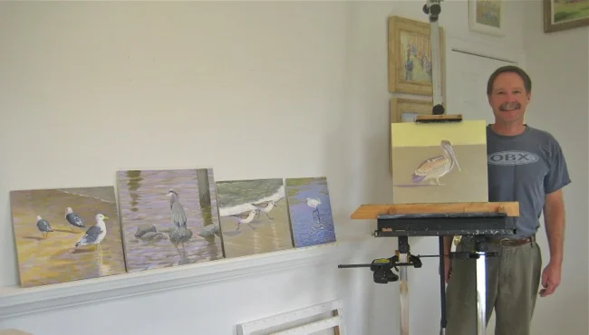 In the studio with his bird paintings!