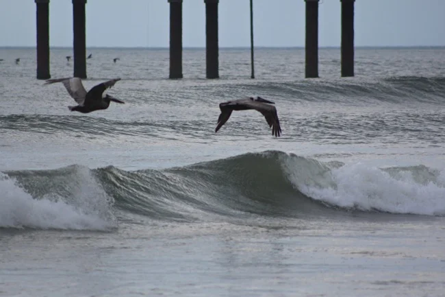 I noticed several Brown Pelicans approaching me, just above the crest of the building waves. They took a sharp turn and headed out to sea. I snapped what would be my last picture of the day before all hell broke loose!