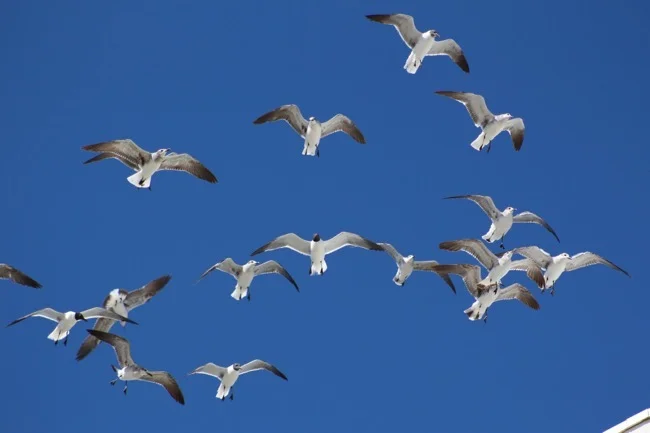 As I was walking along the boardwalk, I saw some frenetic activity in the sky. A couple was throwing breadcrumbs off of their 10th floor balcony, feeding the seagulls. I was struck by the blueness of the sky, allowing the white in the gulls to really pop. It was a feeding frenzy, almost abstract in appearance.
