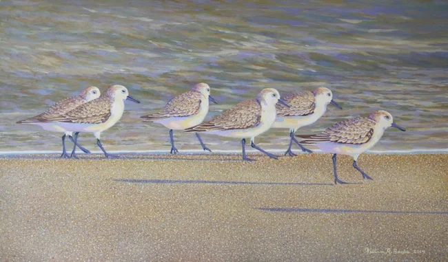 The Sanderling Six by William R. Beebe, 12 x 20, oil on board, $2500
