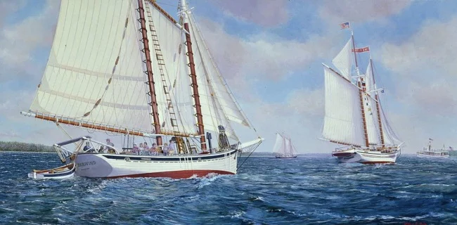 Schooners Timberwind & Heritage by William R. Beebe, Lithographic print