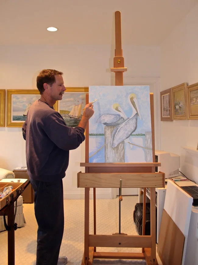 The next 13 years have been spent living in Williamsburg, Virginia. I continued to paint a number of Maine scenes working from my large resource of Maine photographs. I gradually branched off from painting Maine schooners to some of the schooners that are prominent on the Chesapeake Bay, including the Schooner Virginia, the Pride of Baltimore II, and more. I also developed a portfolio of European landscapes, American landscapes, and eventually a collection of Aviary paintings.