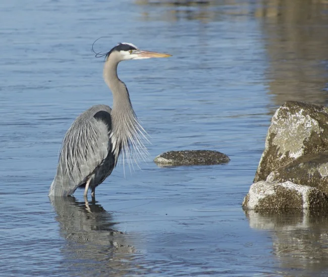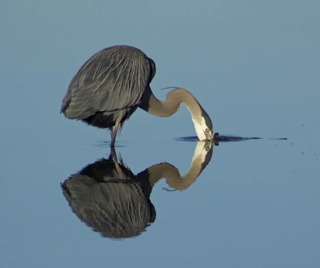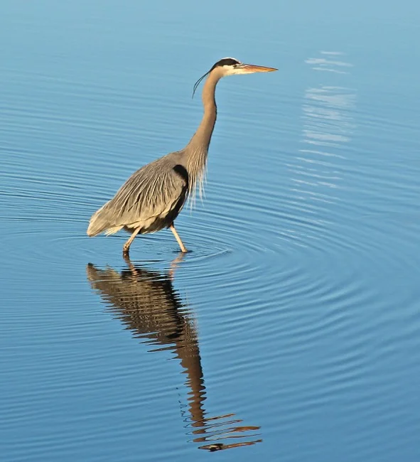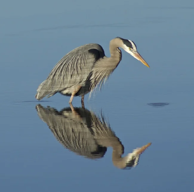 As if to prove my theory, the Great Blue turned and walked right over to the reflection of the moon in the water. He stood on one side of it and then on the other, as if to say, “Are you getting this?”