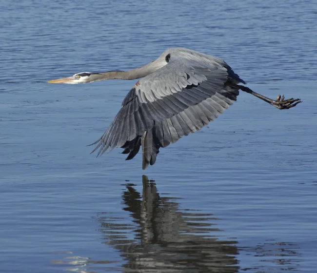 In the end, like the moon, the Great Blue Heron decided to move along. He left me with a beautiful flyby!
