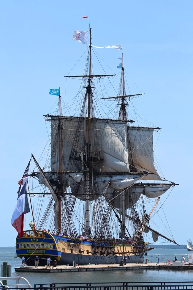 As I was backing up with my Digital SLR camera with its zoom lens, trying to capture the entire Hermione ship in the York River, I was kicking myself for not bringing my regular lens.