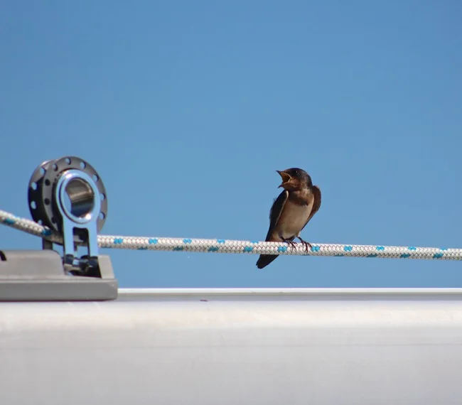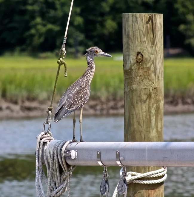 Maritime art and Aviary art don’t have to be mutually exclusive. Birds and boats go together like ham and eggs, much to many boaters’ chagrin. Boaters constantly have to clean up after them. Many docks have pointed tops on their pilings, so the birds won’t land on them. Boaters put canvas covers on their boats to help keep them clean.