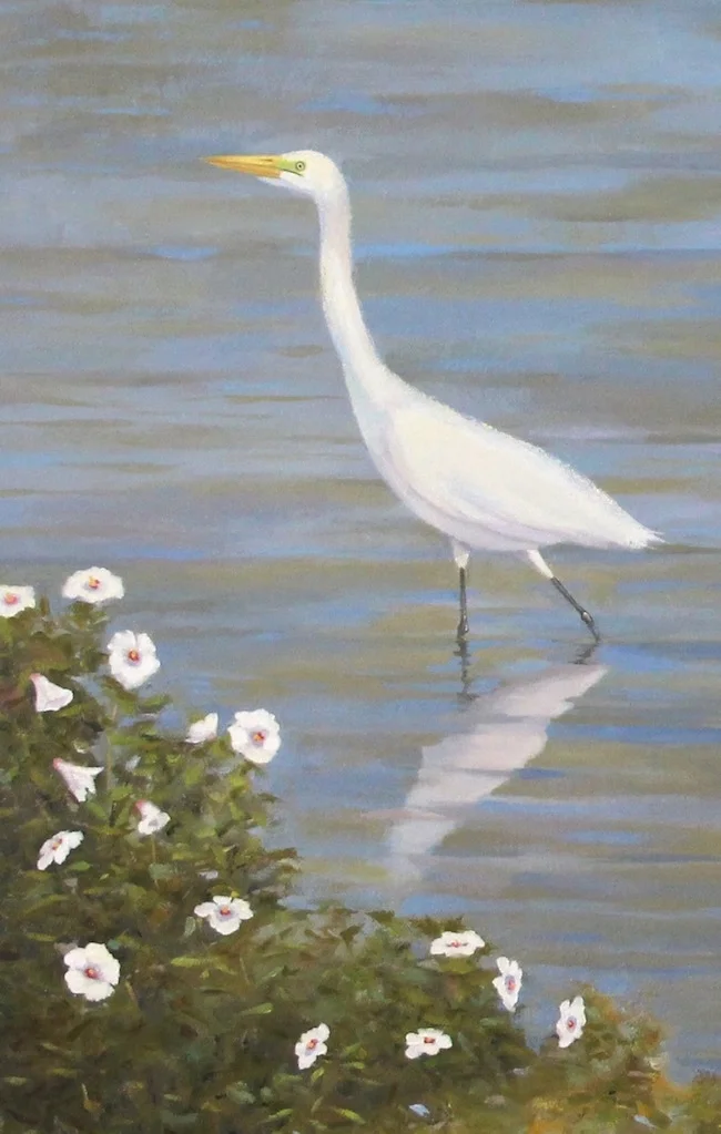 The Egrets and Mallows of Blackwater by William R. Beebe, 30 x 40, oil on canvas, $6500