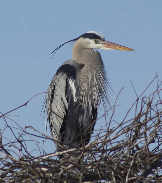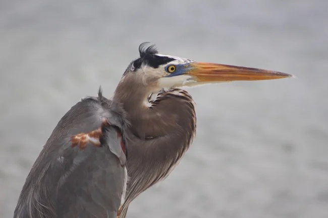 On the other hand this Great Blue Heron was less colorful, had more grays and the upper half of the beak was blue and not orange/yellow. It was older looking and weathered. Out of a lineup I would pick it every time as the Oxford, Maryland Blue that was on a post dosing on and off on one leg! ☺