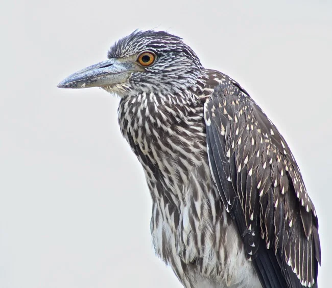 Some other interesting bird portraits I came across include this little juvenile Night Heron. It was on the docks of a local marina and was seemingly unafraid of humans. Its beak was weathered like you’d imagine an old bird’s would be, but it had the beautiful white-tipped markings of a juvenile.