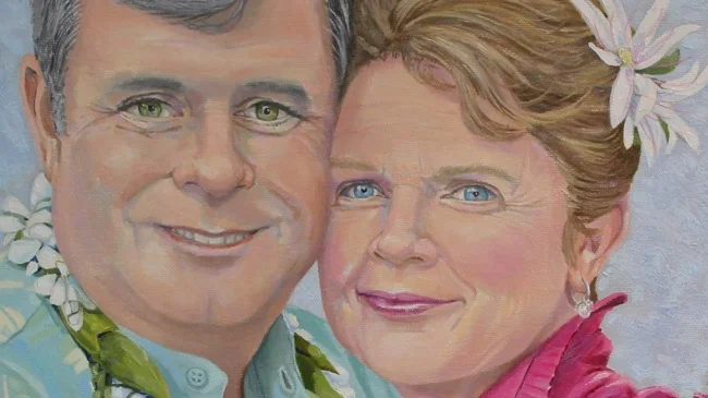 It was an honor to paint their portrait. I always enjoy sitting down at my easel and getting started on a new project, but this time it was different. It was a very personal project. My overriding goal was to capture the love between the two of them, highlight the sparkle in their eyes, and present them united as one.
