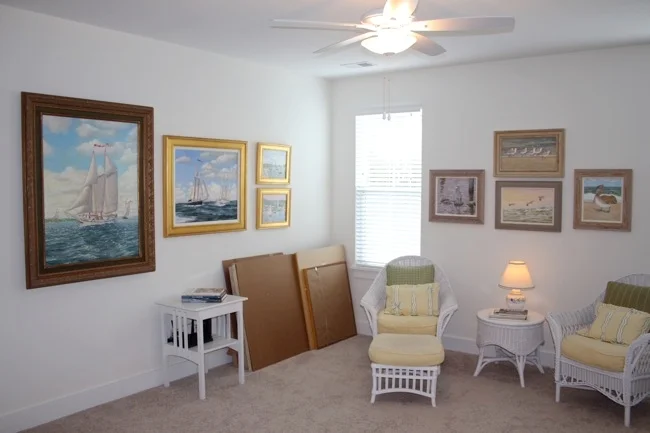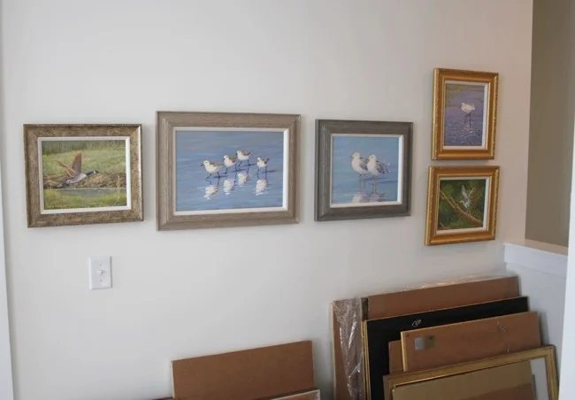 Just out the door from my studio is what we fondly call Cranes Nest Gallery. When clients, prospective clients, and friends come to see my work we have a "gallery" space featuring maritime, aviary, and American and European landscape paintings. Paintings are up and showings are by appointment only. :-)