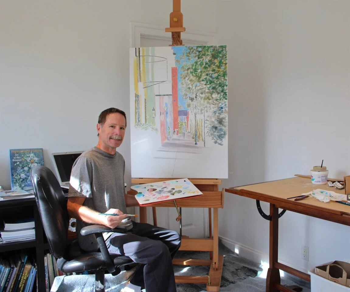 We had lived in beautiful Williamsburg, VA, for 14 years, but were dreaming of moving to Charleston, SC, and becoming involved in their very active and thriving art community. One painting tells our story and is a metaphor for where we are today!