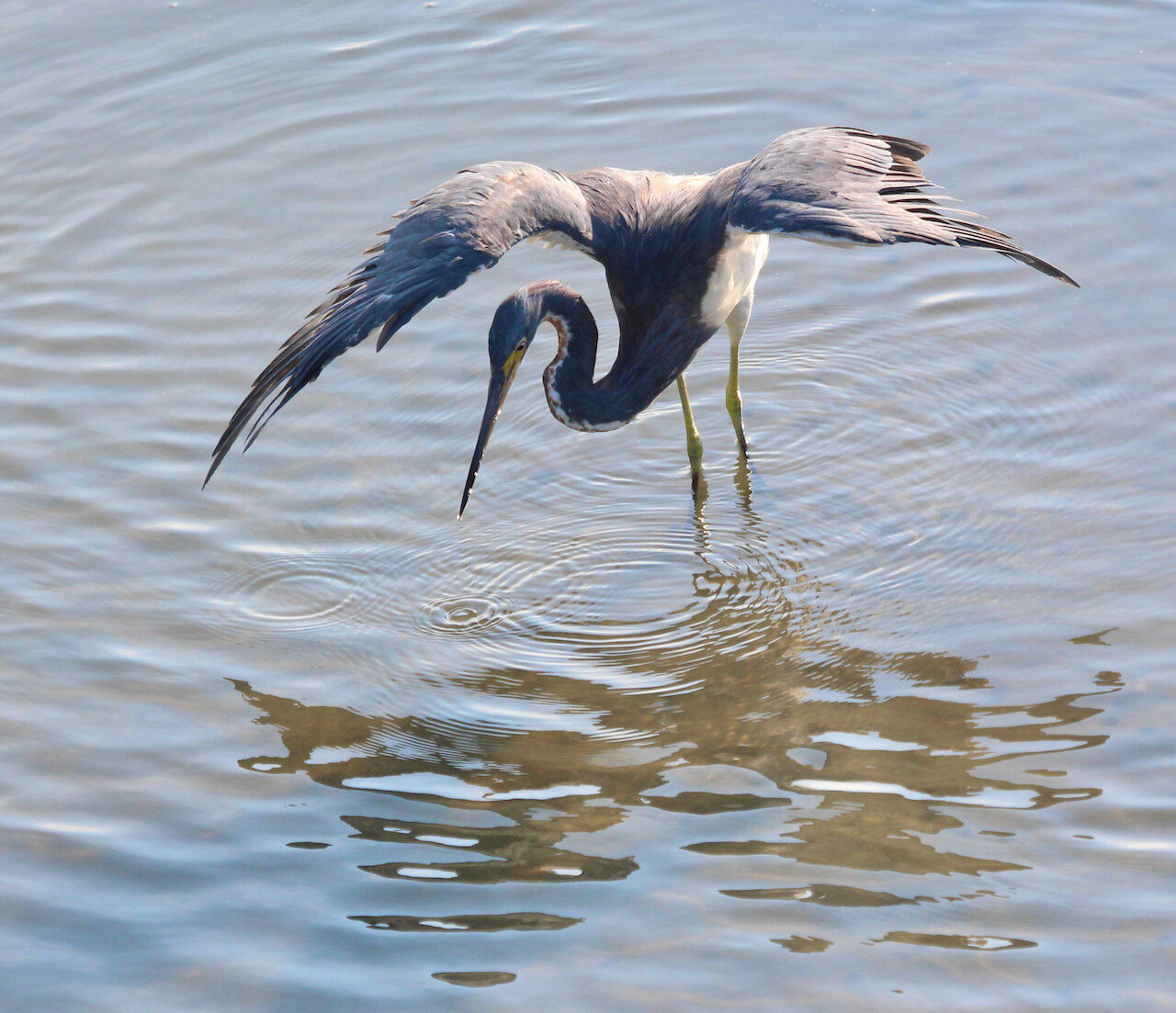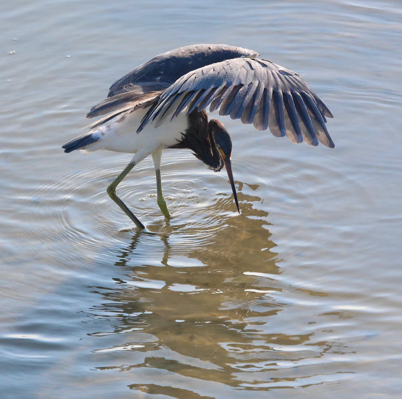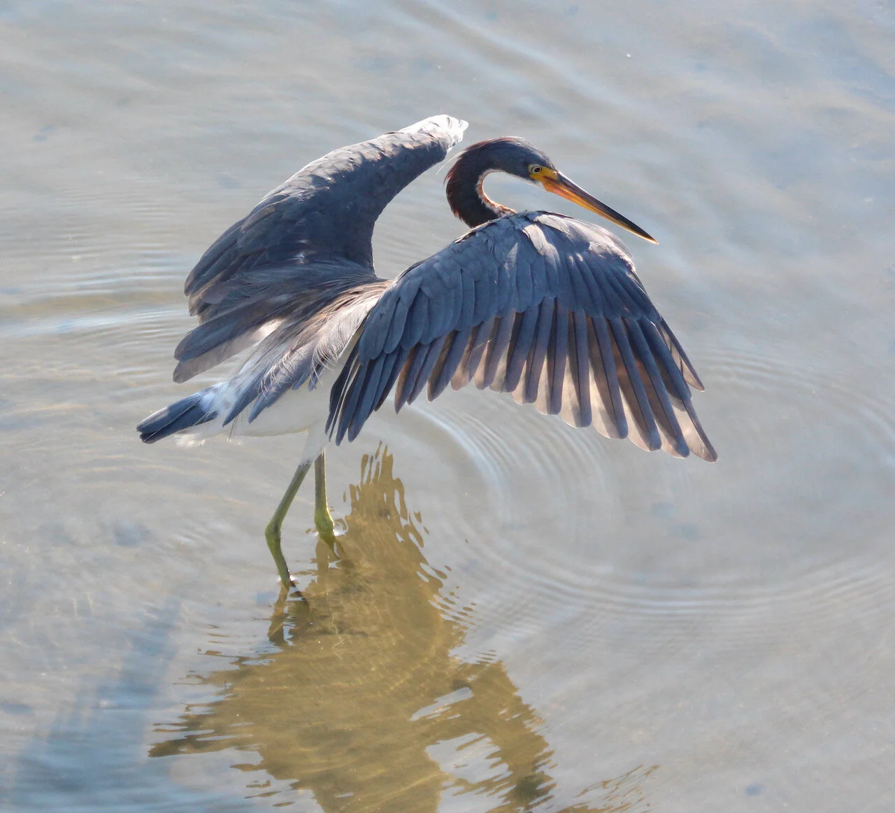 Tactical Fishing Techniques of the Tricolored Heron ~ Compensating for bright light!