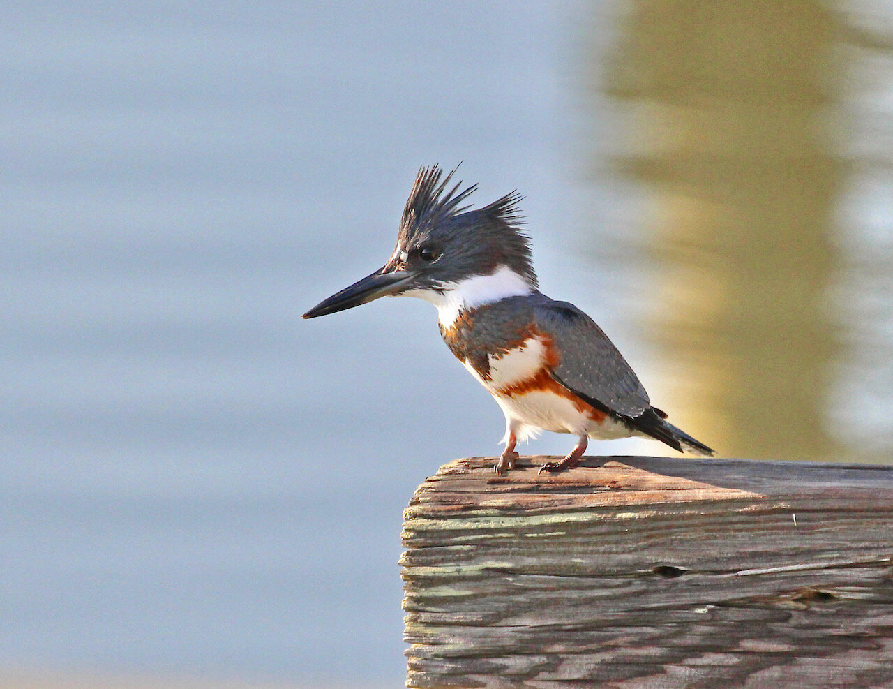 I started to head back to my car, grateful that the Tricolored Heron’s performance took my mind off 9/11 for a short time. Then about 15 feet away, perched on the side of the bridge was one of my favorite birds, the elusive Belted Kingfisher. Another rare sighting for me.