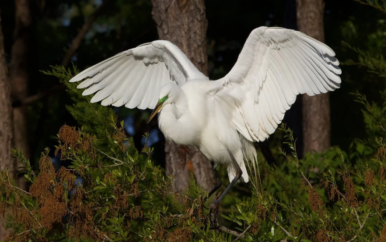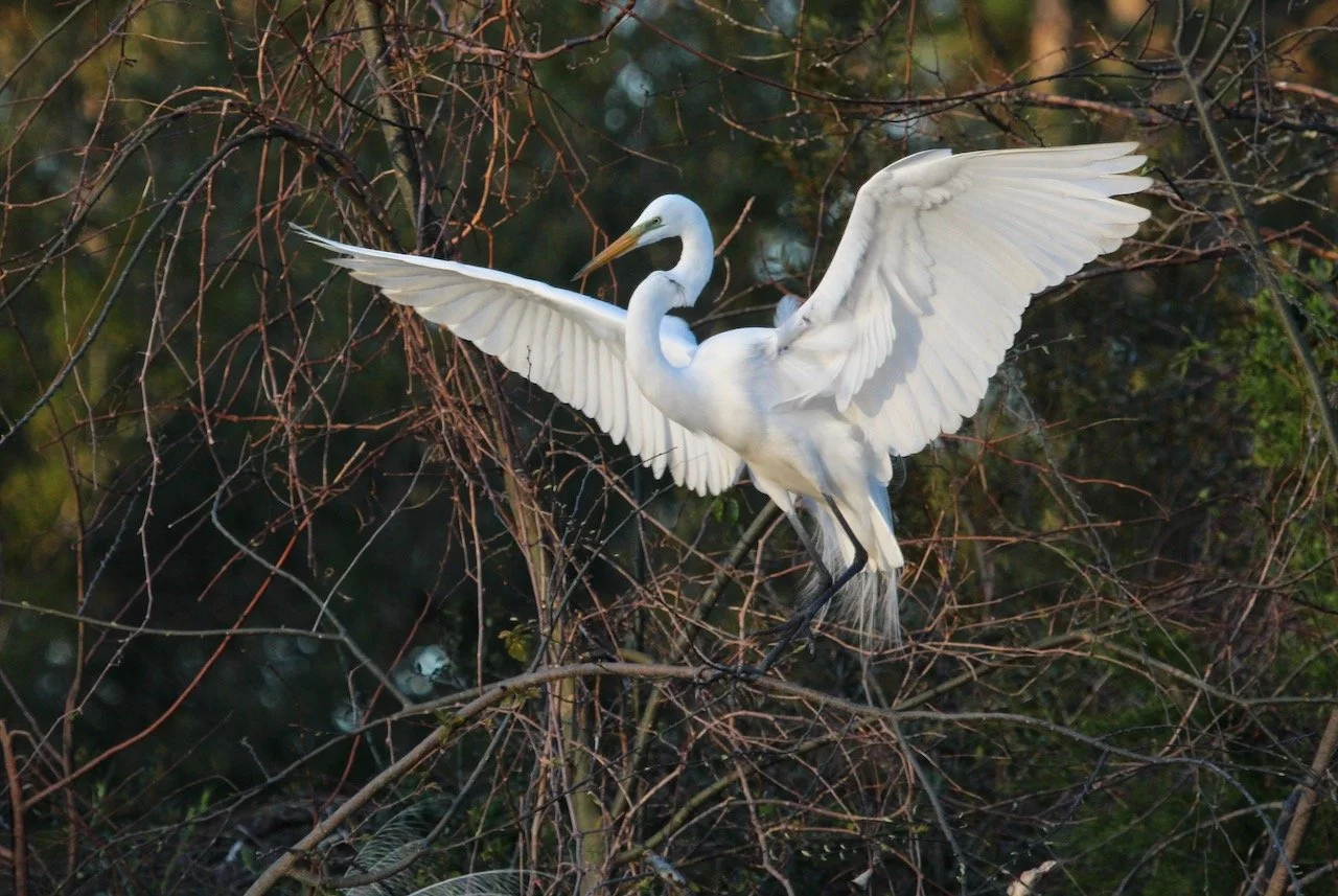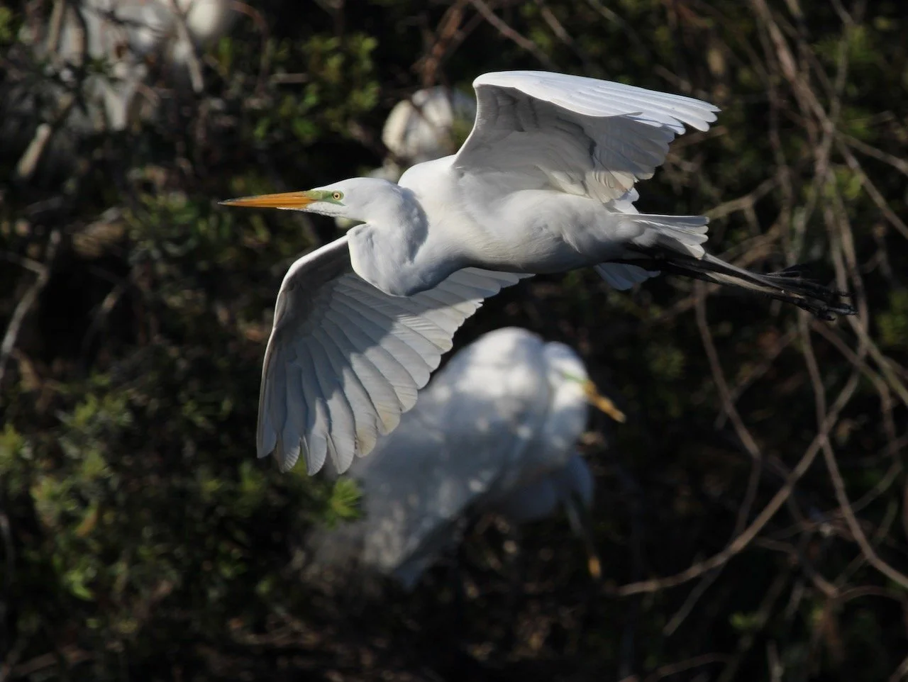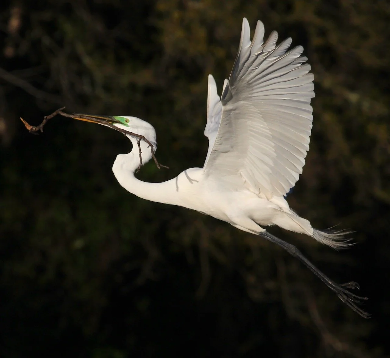 Recently, I was out photographing Great Egrets during the Golden Hour. The egrets were busy going back and forth across a pond, fetching sticks to build their nests. The surrounding woods and water were darkening down leaning toward low lighting conditions. But, when the warm evening sunlight caught the egrets in flight, they would light up as if in a spotlight on stage.