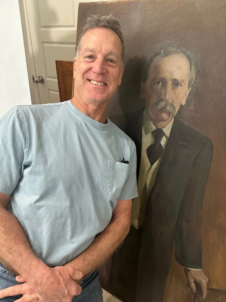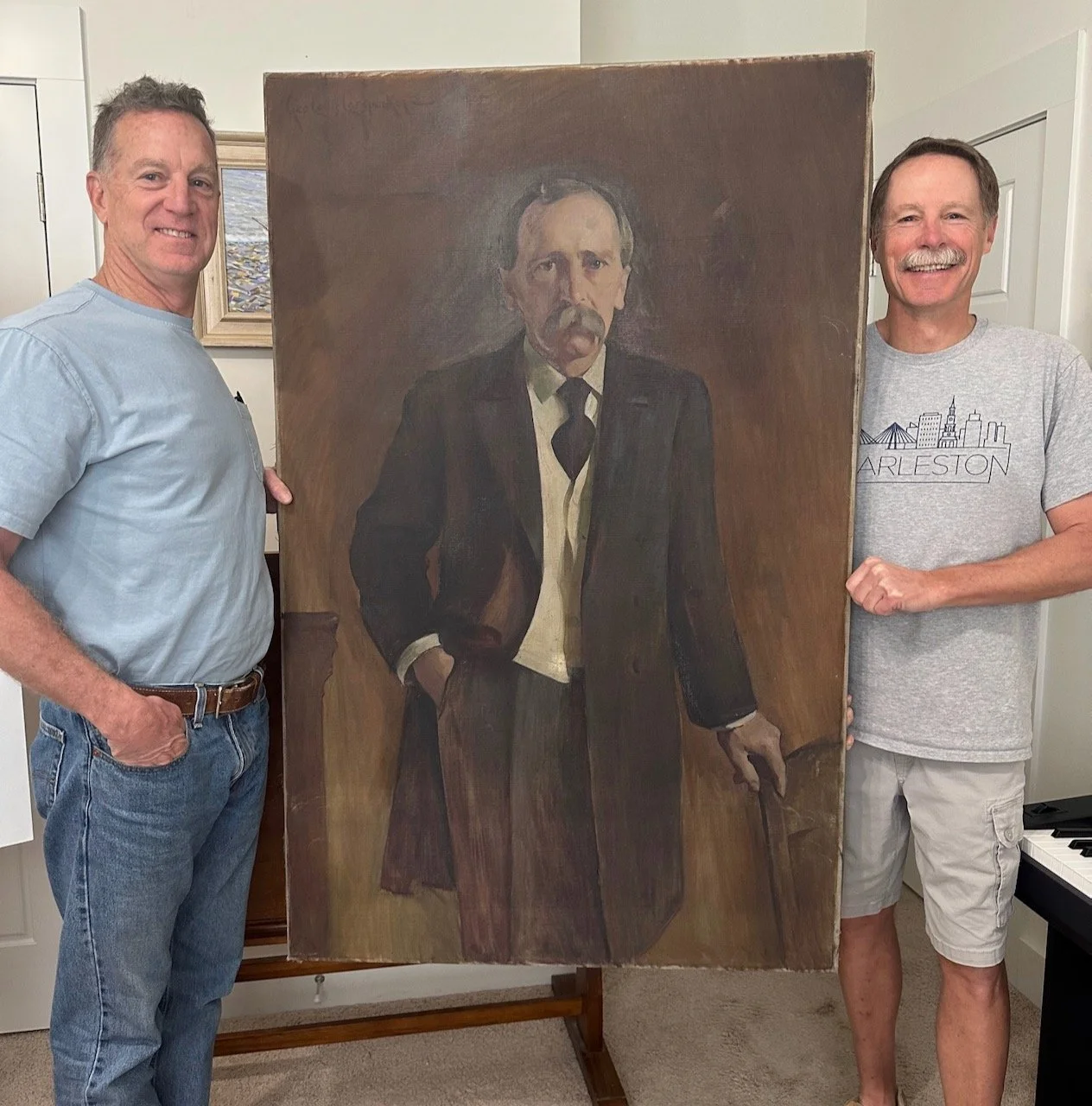 For decades the portrait had a big white spot on his vest! When my brother mentioned that they were thinking about having the portrait cleaned, I told him that I just happened to know a guy! Right here in Charleston there is a master restorationist/conservationist Fernando Valverde, at Charleston Art Restorations.