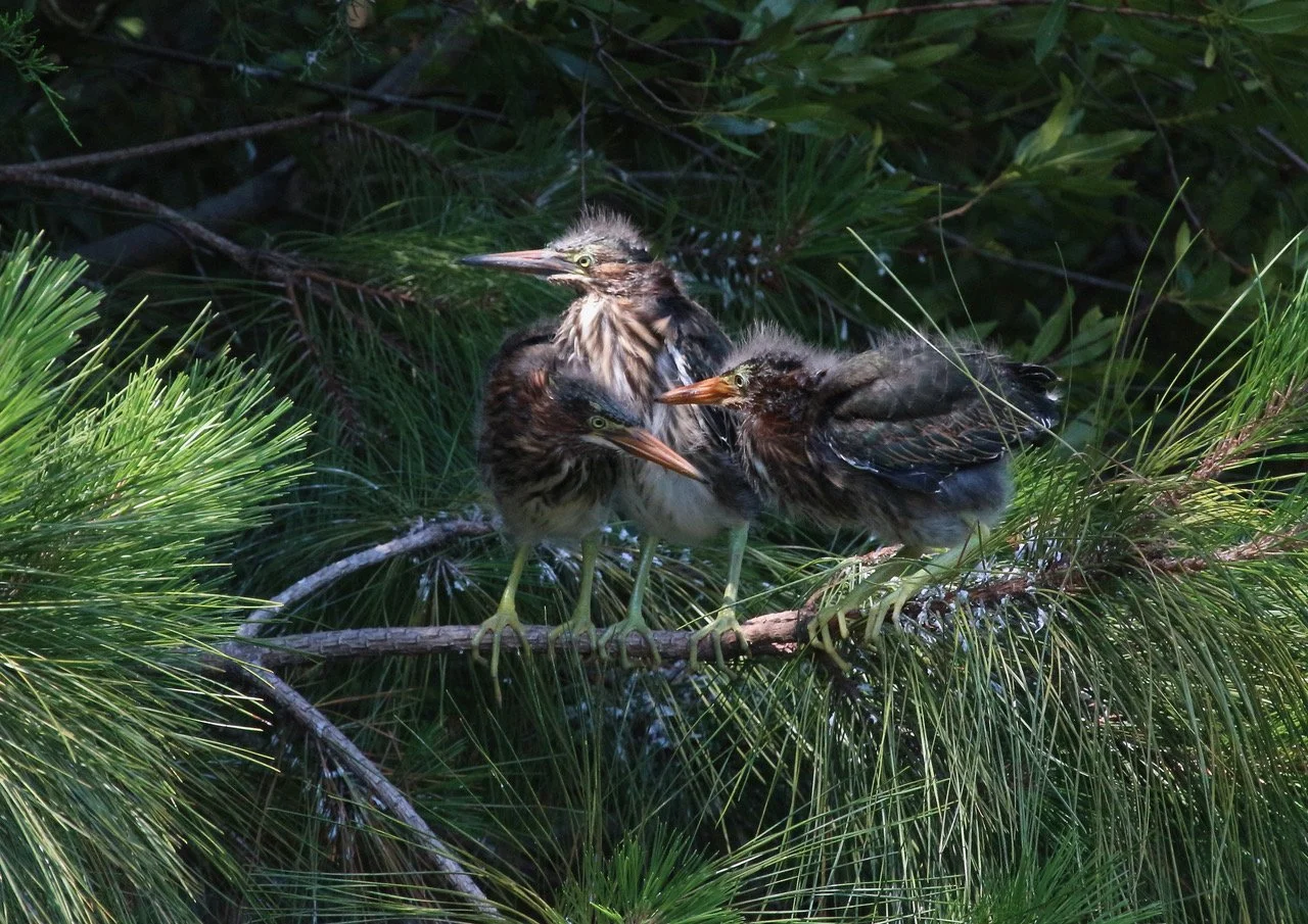 The largest of the herons is the Great Blue Heron, then comes the Tri-colored Heron, the Black-crowned Night Heron, the Yellow-crowned Night Heron, and last but not least the Green Heron. Unfortunately, I don’t have any juvenile Tri-colored Heron pics to share with you, but I do have baby pics of all the other herons!