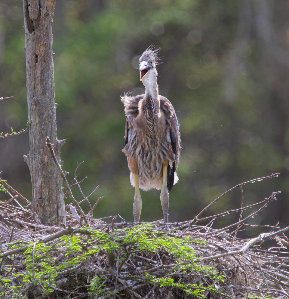 It’s that time of year again when the herons are nesting. Baby herons are full of character, shall we say. They are playful, mischievous, and sometimes even ornery especially when they are hungry. They are also quite photogenic, in a manner of speaking, as they go through their awkward stages of peach fuzz, bug-eyes, molting of their feathers, and histrionics!